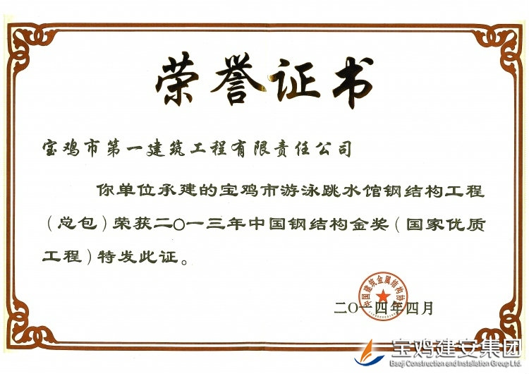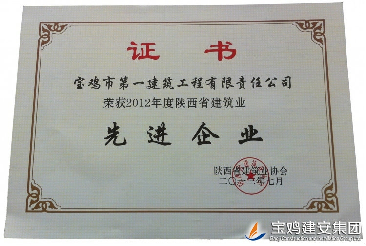 Baoji Construction and Installation Group Public Limited Company, built in 1962, is a traditional company in the municipal construction industry. After more than 50 years of development, the company becomes a large construction enterprise possessing abundant funds, sophisticated machinery and equipment as well as exquisite construction skill, and annual output of the company has exceeded 1 billion yuan. At present, the company has more than 700 employees, including 216 intermediate and advanced professional managers; the company has qualifications of first-level general contracting of housing construction, second-level general contracting of municipal public engineering and mechanical & electrical installation engineering, professional first-level general contracting of steel structure work, fire-fighting facilities engineering, lifting equipment installation work and building decoration engineering, as well as professional third-level contracting of ancient garden construction engineering and building curtain wall engineering.