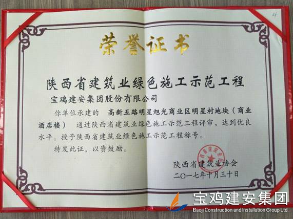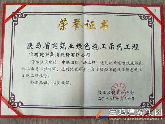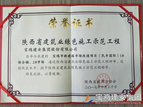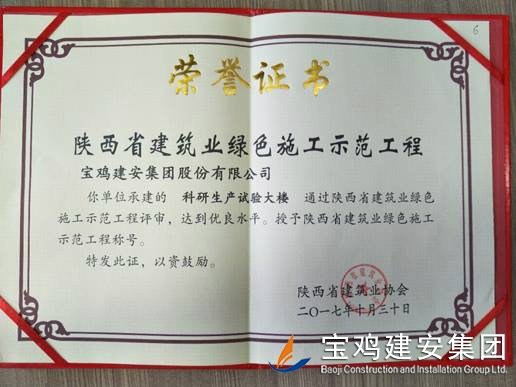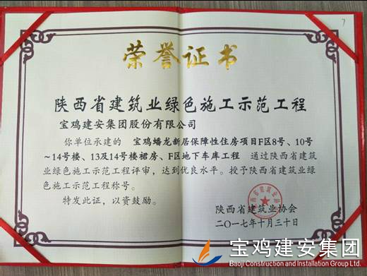 2018年1月26日在西安召開(kāi)了陜西省建筑業(yè)協(xié)會(huì)第六屆二次理事會(huì)議,我公司承建的科研生產(chǎn)試驗(yàn)大樓、寶雞蟠龍新居SF05標(biāo)段,高新五路明星佳苑、新建路市場(chǎng)改造項(xiàng)目(民豐國(guó)際)、中聯(lián)國(guó)際廣場(chǎng)項(xiàng)目,在2017年度綠色施工評(píng)審過(guò)程中,達(dá)到優(yōu)良水平,被授予陜西省建筑業(yè)綠色施工示范工程稱(chēng)號(hào)。 此次榮譽(yù)的獲得離不開(kāi)公司各職能部室的指導(dǎo)與項(xiàng)目部的辛勤努力,項(xiàng)目部能緊跟建筑行業(yè)發(fā)展的大方向,不斷加強(qiáng)綠色施工過(guò)程管理的學(xué)習(xí),在施工過(guò)程中圍繞著“四節(jié)一環(huán)?!崩砟?,堅(jiān)持走節(jié)能降耗,增效降本,可持續(xù)發(fā)展的施工道路,最終取得了可喜的成績(jī)。 公司綠色施工整體水平近年來(lái)得到顯著提高,希望各項(xiàng)目部在2018年的施工過(guò)程中,以文明施工,綠色施工標(biāo)準(zhǔn)嚴(yán)格要求自己,力爭(zhēng)在施工管理方面取得更高的成績(jī)。