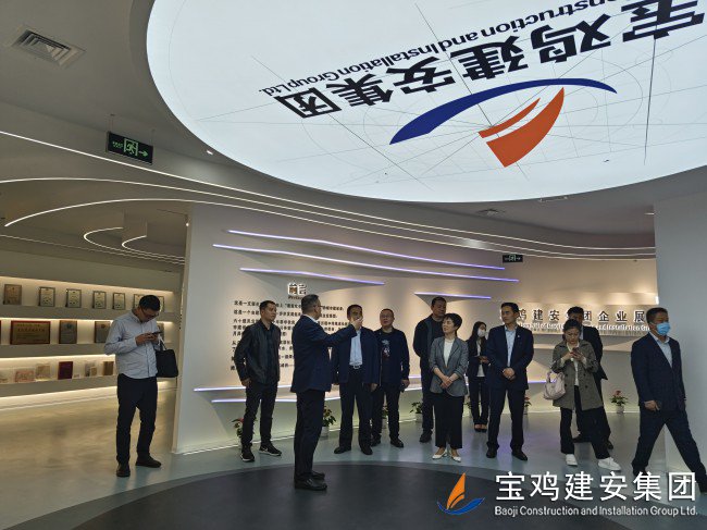 在公司總經(jīng)理胥永寧等集團領(lǐng)導的陪同下,考察團一行前往寶雞建安大廈,觀看企業(yè)宣傳片,了解集團經(jīng)營產(chǎn)業(yè)概況。代表團一行還參觀了公司23樓體育健身設(shè)施場館及職工文化娛樂配套項目;在建安大廈22樓企業(yè)展廳里,嘉賓們仔細觀看了陳列在此的企業(yè)榮譽成績、代表性工程及歷史實物,在胥總和展廳講解員的引導和解說下,代表團一行全面了解了寶雞建安集團六十年輝煌歷史,以及集團在推動寶雞城建事業(yè)中所做出的卓越貢獻和重要地位。